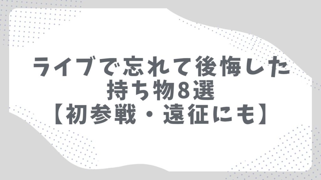 この記事では、ライブで実際に「忘れて後悔した持ち物」をまとめました。事前にチェックしておくことで、当日をより快適に過ごせるようになります。
